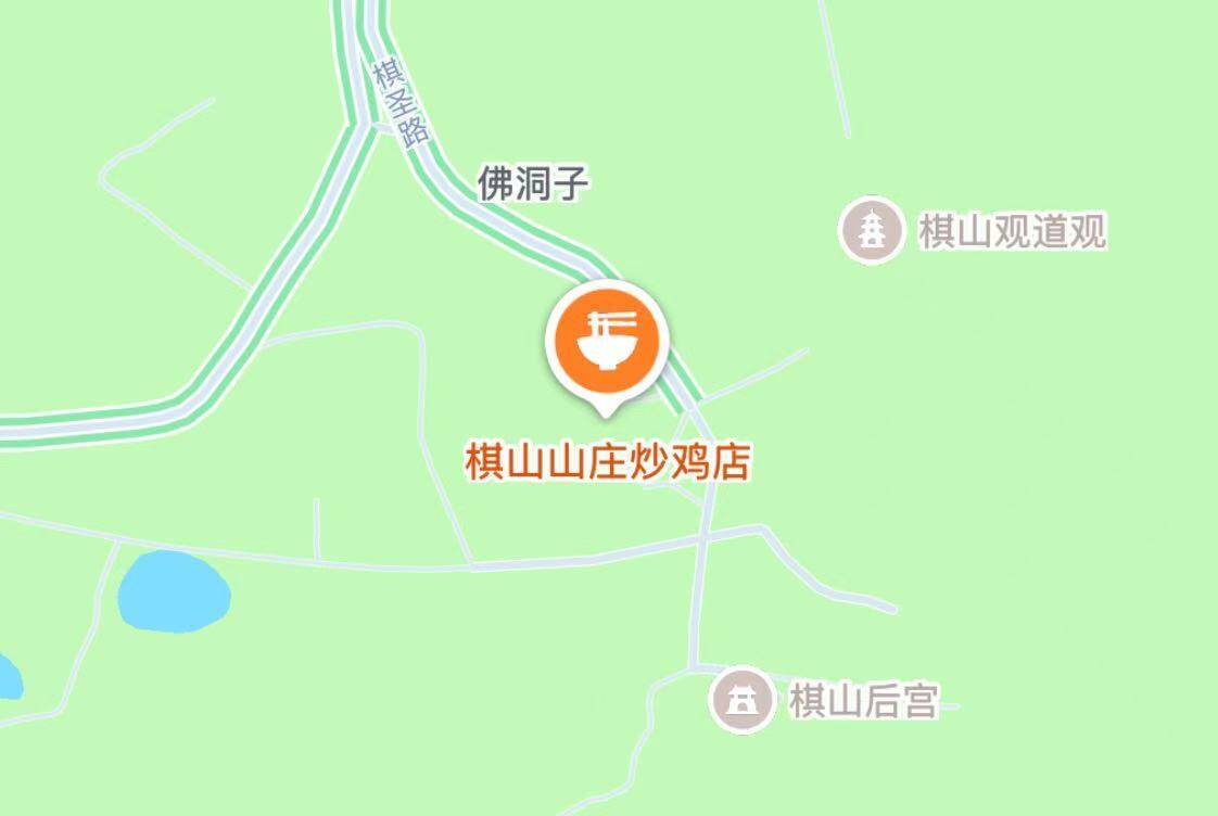 在棋山风景区,能边吃边看山景。招牌棋山炖鸡、炒鸡鲜掉眉毛,红烧兔头、“勾魂媳妇” 凉拌菜很有特色,铁锅油饼香酥,每桌必点。